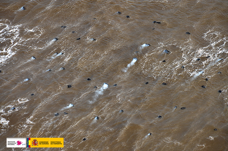 La mancha provocada en el mar era visible durante muchas semanas desde el espacio como atestiguaron los distintos satélites.