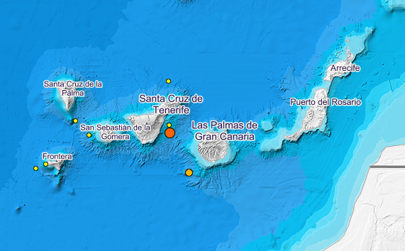 Una de las zonas con más actividad de terremotos en Canarias es la concentrada entre Tenerife y Gran Canaria