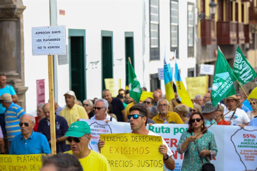 Además, la plataforma convocante de la manifestación, junto a las asociaciones Agua para La Palma y Amigos del Plátano, han comunicado que la crisis de precios que afecta al plátano de Canarias ha provocado que alrededor de 800 agricultores de esta fruta en toda Canarias hayan tenido que abandonar sus cultivos.