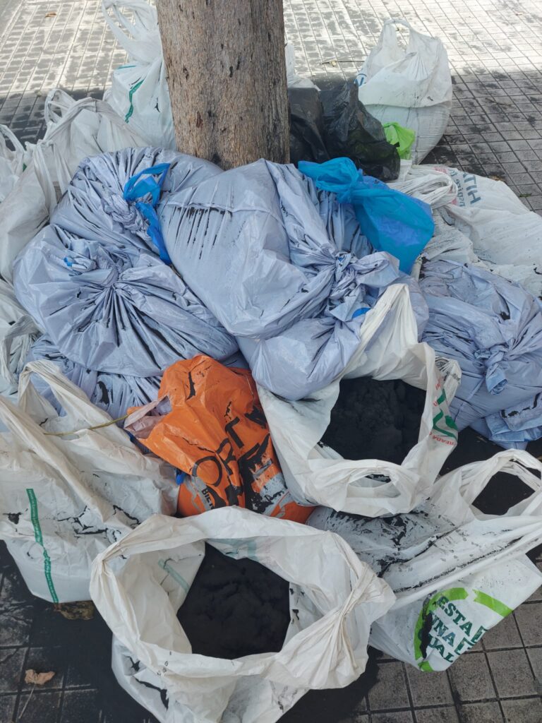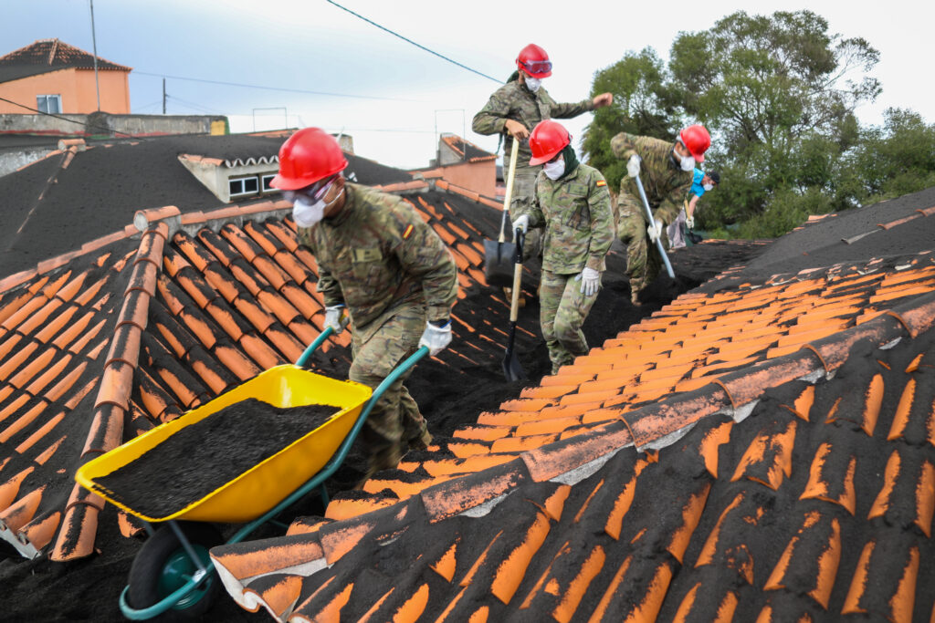 De momento, y mientras concluyan los análisis de la composición química de las cenizas, no queda otra que amontonarlas donde menos daño hagan, a la espera de poder destinarla a otros usos. Vecinos, operarios de limpieza, bomberos personal de la UME, policía y guardia civil colaboran tanto para retirar las toneladas de arena negra de casas y carreteras, como para asegurar las conexiones.