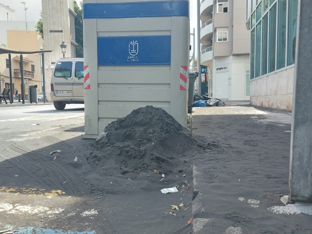 Si no fuera por el olor a azufre y porque cae del cielo parecería arena de la playa. Como si las playas de La Palma hubieran decidido mudarse a la ciudad. En los arcenes de las carreteras, en los container de obra, en las esquinas, por los rincones se amontona esta capa de ceniza salida de las entrañas del volcán.