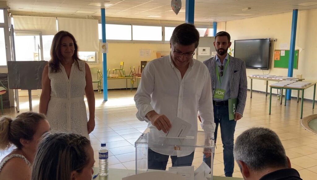 Los candidatos y candidatas a nivel nacional también han madrugado para depositar su papeleta en la urna. El primero de los políticos españoles en votar ha sido el presidente del Gobierno, el socialista Pedro Sánchez, que llegó al colegio electoral acompañado por su mujer, Begoña Gómez.