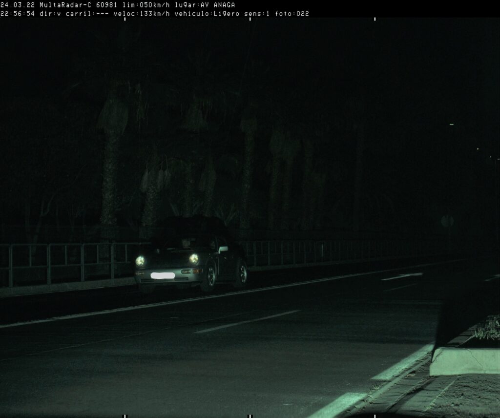El servicio de radar realizaba esa jornada uno de los controles programados mensualmente. Esa noche captaron la imagen del vehículo, en dirección hacia la Avenida Anaga, a las 22.56 horas.