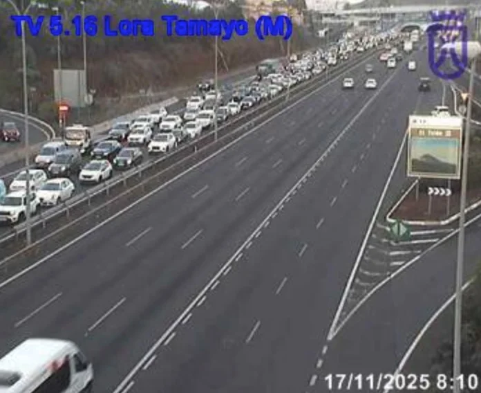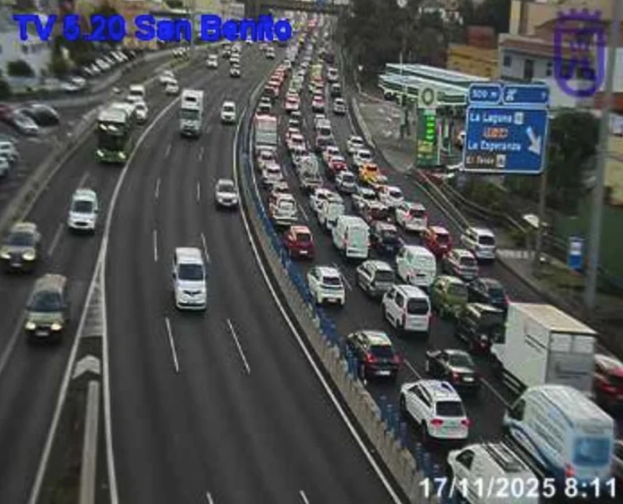 Un accidente en la TF-5, a la altura del pabellón Santiago Martín en La Laguna, dejó a primera hora de la mañana importantes retenciones en dirección a Santa Cruz de Tenerife.