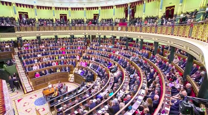 La sesión solemne de las Cortes Generales comenzará tras la interpretación del himno nacional con el discurso de la presidenta del Congreso