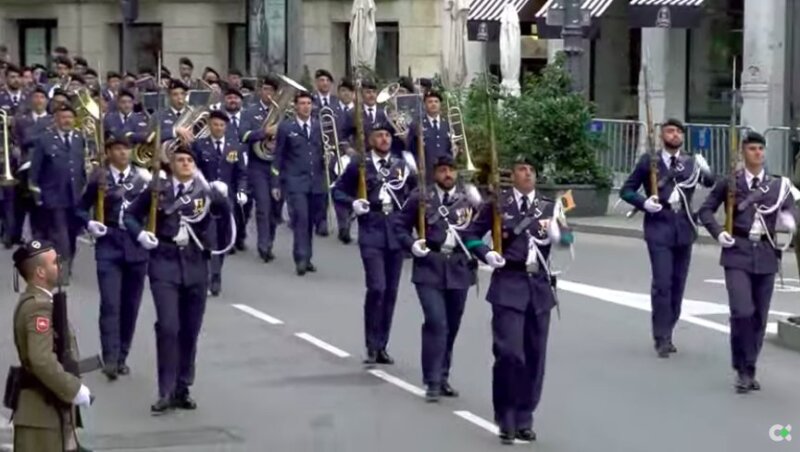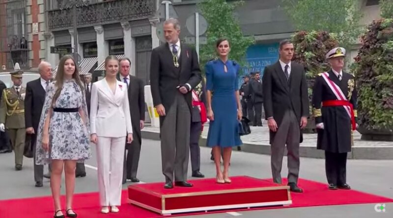 Tras los saludos a las autoridades, en la escalinata del Congreso la familia real presenciará el desfile de la agrupación de las Fuerzas Armadas y Guardia Civil por la Carrera de San Jerónimo.