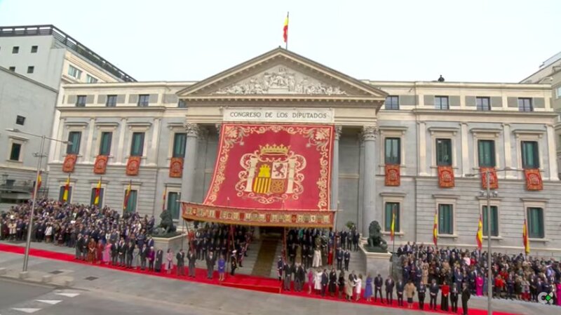 Decenas de medios se han acreditado para cubrir este acto histórico para la monarquía española. A las puertas del Congreso aguardan al inicio del acto para retransmitir todos los detalles de esta cita.