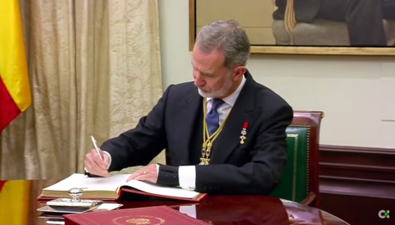 El Rey Felipe VI firma en el libro de honor del Congreso de los Diputados que inaugura su segunda edición