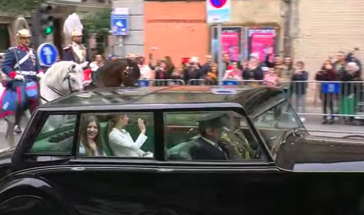 La princesa Leonor junto a los Reyes y la infanta Sofía se dirigen hacia el Congreso de los Diputados