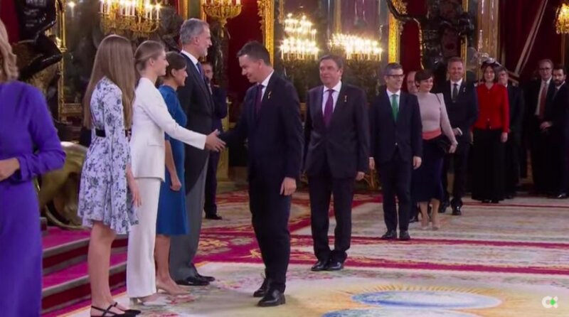 En el Palacio Real se realiza también el saludo a las autoridades invitadas con motivo de la jura de Leonor. Entre ellos ha estado el ministro de Turismo, Héctor Gómez y el presidente de Canarias, Fernando Clavijo.