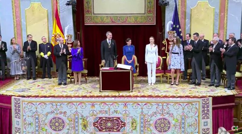 El único adorno que lleva el Toisón de Oro en forma de broche, «situado justo encima del corazón», la única condecoración que tiene hasta el momento, «en horas después recibirá la segunda, la orden de Carlos III», ha recordado Del Amo.