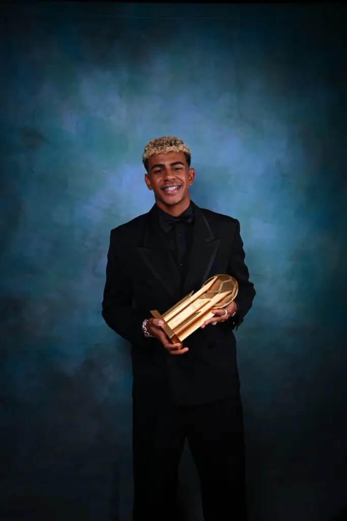 Lamine se conformó con el premio Kopa al mejor joven, el segundo consecutivo que gana la estrella blaugrana y de la selección española a sus 18 años, lo que le augura un buen ambiente con este galardón, superando en la votación final a dos jugadores del PSG, Desiré Doué y Joao Neves.