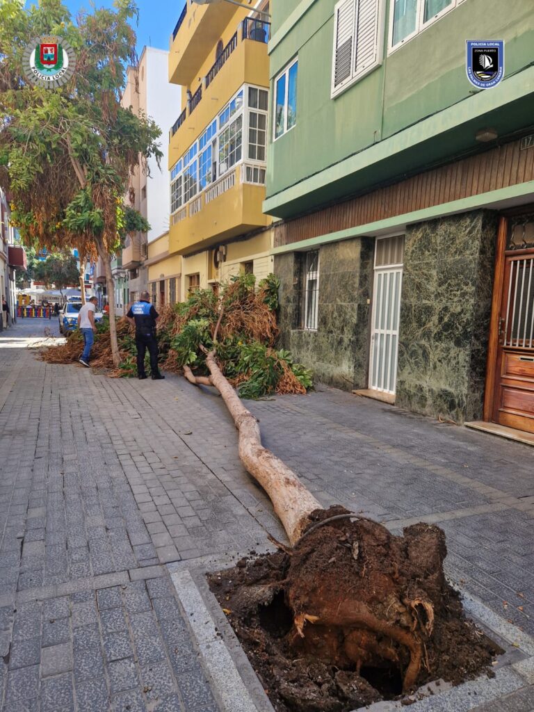 El fuerte viento provoca la caída de un árbol en la calle Joaquín Costa, en Las Palmas de Gran Canaria. En el lugar intervino la Unidad Territorial Zona Puerto de la Policía Local, bomberos de Las Palmas de Gran Canaria y personal de la Unidad Técnica de Parques y Jardines, que procedieron a su retirada.