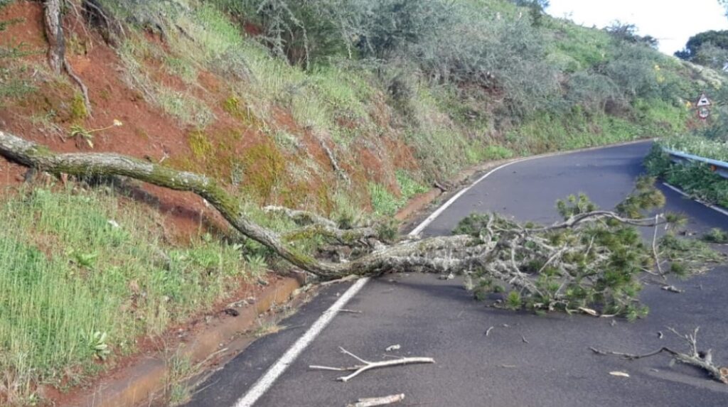 Durante la primera mitad del día, el Centro Coordinador de Emergencias y Seguridad 112 del Gobierno de Canarias ha gestionado una veintena de incidentes en las islas más occidentales como desprendimientos en carreteras o caída de ramas.