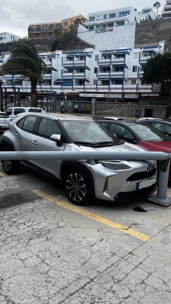 Entre las intervenciones, destacan nueve caídas de señales, cinco fallos eléctricos —incluido un cable caído en la calle Asomadita— y una farola descolgada cerca del Parque Marítimo. También hubo desplazamientos de contenedores, daños en árboles, carteles, toldos y semáforos, y un desprendimiento en Las Casas de la Cumbre. El Ayuntamiento activó el PEMU a las 00:00 horas y reforzó recursos con Policía Local, Protección Civil y servicios públicos.