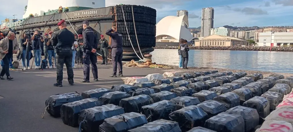 El carguero apresado por la Policía Nacional y la Armada Española a 535 kilómetros de Canarias con la colaboración de la agencia antidrogas de Estados Unidos (DEA) transportaba el mayor alijo de cocaína aprehendido hasta la fecha en el mar por las fuerzas de seguridad europeas.