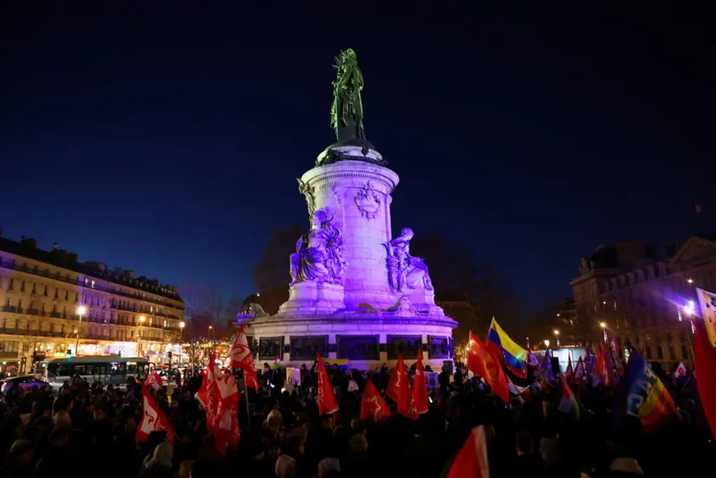 La gente se manifiesta en oposición a las acciones de Estados Unidos en Venezuela en una protesta, después de que el presidente estadounidense Donald Trump dijera que Estados Unidos atacó a Venezuela y capturó a su presidente Nicolás Maduro, en París, Francia, el 3 de enero de 2026. REUTERS/Abdul Saboor