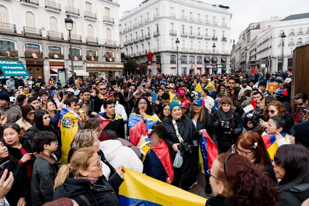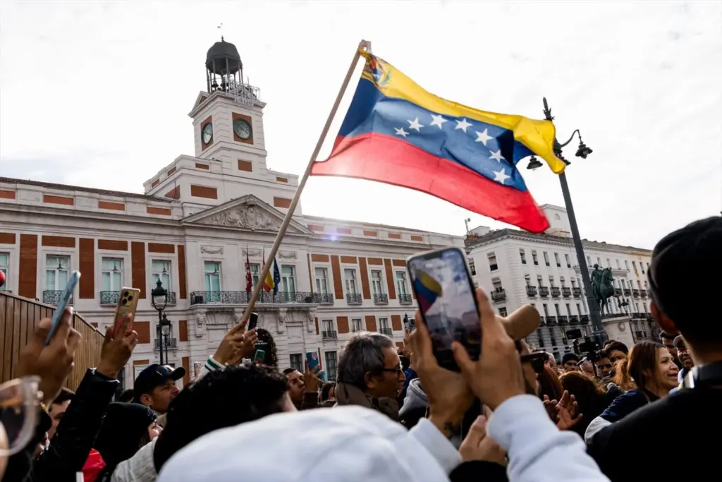 Decenas de venezolanos celebran la «caída del régimen de Maduro», en la Puerta del Sol, a 3 de enero de 2026, Europa PressDecenas de venezolanos celebran la «caída del régimen de Maduro», en la Puerta del Sol, a 3 de enero de 2026, Europa PressEn la Puerta del Sol en Madrid se han concentrado centenares de personas / Europa PressMADRID, 03/01/2026.- Manifestación de ciudadanos venezolanos tras el operativo militar de parte de Estados Unidos contra Venezuela para arrestar al presidente de ese país, Nicolás Maduro, este sábado en la Puerta del Sol, en Madrid. EFE/ Borja Sánchez-TrilloLa gente sostiene banderas estadounidenses y venezolanas, mientras reaccionan a las noticias después de que el presidente de Estados Unidos, Donald Trump, dijera que Estados Unidos atacó a Venezuela y capturó a su presidente Nicolás Maduro, en Madrid, España, el 3 de enero de 2026. REUTERS/Violeta Santos Moura