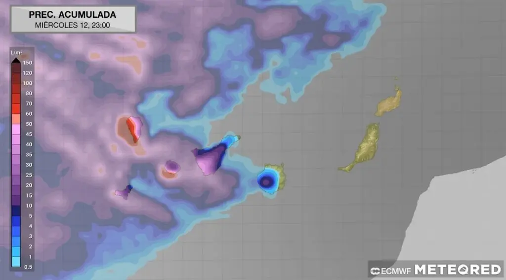 A partir del miércoles, 12 de noviembre, se prevé la entrada de un frente frío que dejará tormentas en las islas comenzando por La Palma, La Gomera, El Hierro y Tenerife, para irse desplazando a la parte oriental de Canarias.