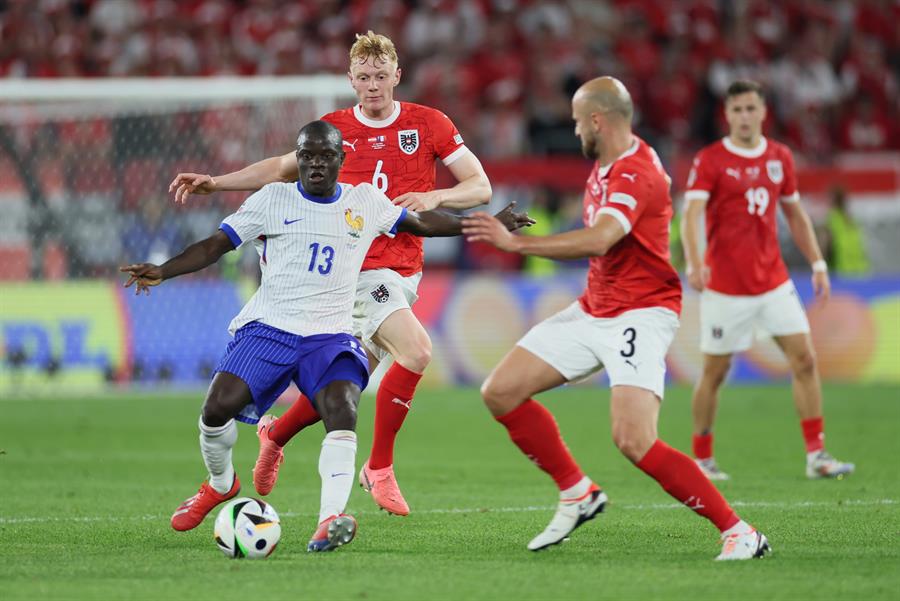 Después, ya dentro de la última media hora, Marcus Thuram dispuso de otra más, soportada de nuevo por Pentz, cuando el partido ya había roto las estructuras, obligada Austria a exponerse más de la cuenta por la derrota parcial, por un golpe de fortuna que sonrió a Francia y Mbappé, que necesitan mucho más para ser un favorito inigualable, salvados incluso en el tramo final por una salida oportuna de Maigan, que se jugó el tipo, o por un repliegue portentoso de Kante, mientras Kylian Mbappé se dolía de una brecha en la nariz que obligó a su reemplazo.