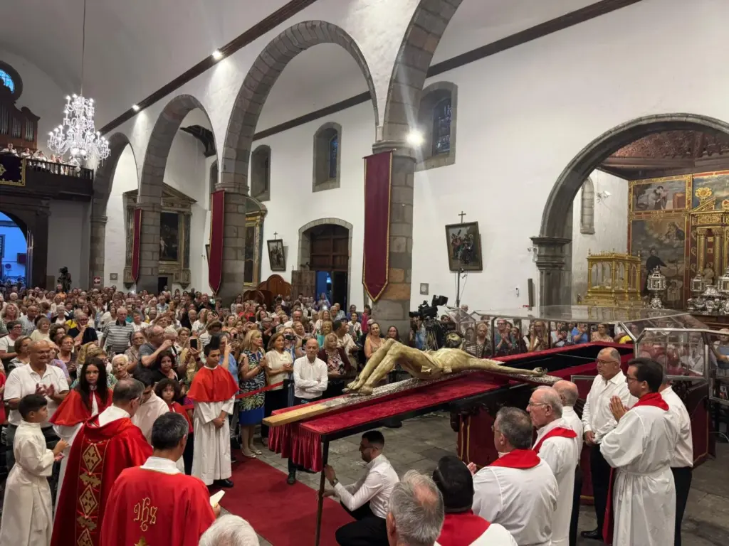 A las 19:00 horas comenzó la eucaristía, presidida por Miguel Lantigua Barrera, de la parroquia de San Agustín y San Bernardo, en la capital grancanaria. Pasadas las 20:00 horas llegó el momento más esperado: el solemne descenso de la talla del Santo Cristo.