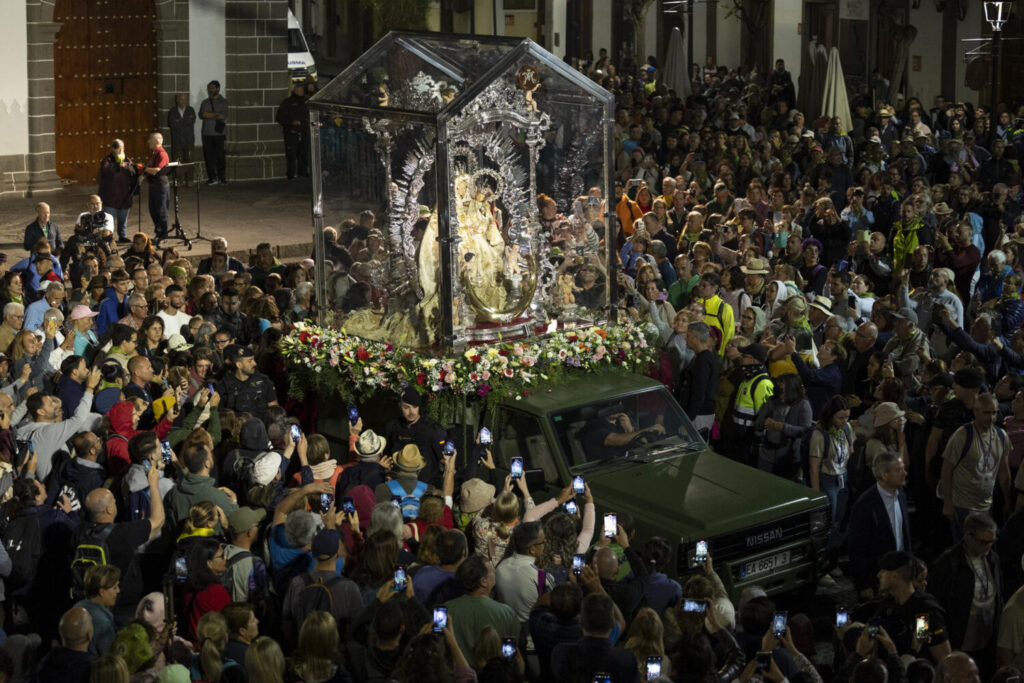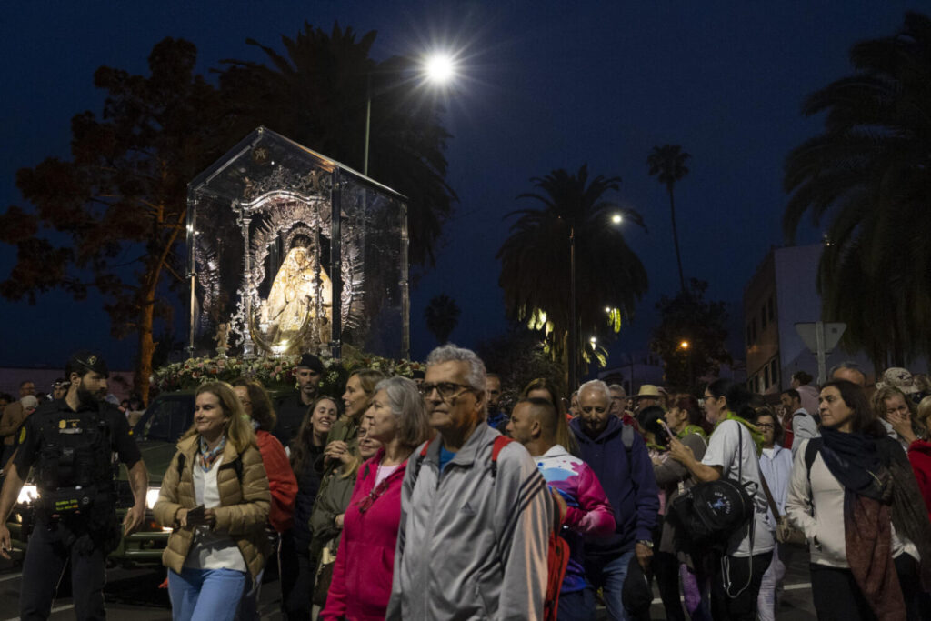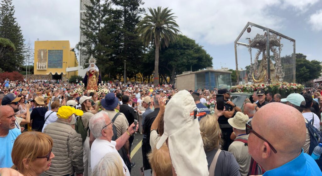 Firma del acta de recibimiento en Teror / Diócesis de CanariasCientos de fieles admiran a la Virgen del Pino. Imagen: Patricia Bosquet.Comienza la Eucaristía en la Plaza de Nuestra Señora del Pino / Diócesis de CanariasLa Virgen del Pino llega a la Basílica / Diócesis de CanariasLa Virgen del Pino pasa por la calle Calle Real de la Plaza. Imagen: Patricia Bosquet.La Virgen del Pino llega a Teror / Diócesis de CanariasLa Virgen del Pino es recibida por las autoridades y la Banda Municipal de Teror / Diócesis de CanariasLa Virgen del Pino cruza el puente viejo de Teror / Diócesis de CanariasLa Virgen del Pino se encuentra con la imagen de la Virgen del Carmen / Diócesis de CanariasLa imagen de la Virgen del Pino en el barrio de Miraflor en Teror / Diócesis de CanariasLa Virgen del Pino ya ha entrado en el municipio de Teror y entra en la recta final de su procesión / Diócesis de CanariasLa Virgen del Pino por la carretera de Teror este mediodía / Diócesis de canariasLa Virgen del Pino se despide de Tamaraceite / Diócesis de Canarias Parada de la Virgen del Pino en el colegio Claret de Tamaraceite / Diócesis de CanariasLa alcaldesa de Las Palmas de Gran Canaria, Carolina Darias, ha compartido imágenes en su red social de X con el camino que va realizando junto a muchos vecinos / Carolina Darias en X La alcaldesa de Las Palmas de Gran Canaria, Carolina Darias, en su parada en Tamaraceite / Carolina Darias en X San Antonio de Padua sale al encuentro de la Virgen del Pino en Tamaraceite / Ayuntamiento de Teror La Virgen del Pino en Tamaraceite se encuentra con la comunidad de San Antonio Abad / Diócesis de CanariasLa Virgen del Pino por Hoya Andrea / Diócesis de Canarias La Virgen del Pino por Lomo Los Frailes / Diócesis de CanariasOración de la Virgen del Pino en las puertas del cementerio / Diócesis de CanariasLa Virgen del Pino a su paso por Siete Palmas / Diócesis de Canarias Virgen del Pino por la carretera de Los Tarahales este 15 de junio de 2025 / Diócesis de Canarias La procesión continúa con miles de personas por los diferentes barrios de Las Palmas de Gran Canaria en su regreso a Teror / Miguel Quintana / RTVCLa procesión continúa con miles de personas por los diferentes barrios de Las Palmas de Gran Canaria en su regreso a Teror / Miguel Quintana / RTVCRTVC está realizando el recorrido con los miles de peregrinos / Fotografía: Miguel Quintana / RTVCEncuentro de imágenes durante el recorrido de la Virgen del Pino / Miguel Quintana / RTVC En ningún momento la Virgen del Pino deja de estar acompañada por cientos de personas / Miguel Quintana / RTVCLas calles y avenidas están llenas con miles de personas acompañando a la Virgen del Pino en su recorrido / RTVC / Miguel Quintana Son muchos los peregrinos que acompañan a la imagen / Miguel Quintana / RTVCMuchos vecinos desde sus casas se han asomado a las ventanas para ver el paso de la Virgen del Pino / Miguel Quintana / RTVCFuerzas y cuerpos de seguridad acompañan a la comitiva durante toda la procesión para garantizar la seguridad de los vecinos / Miguel Quintana / RTVCIncluso desde sus casas, muchos vecinos se han emocionado al paso de la procesión de la Virgen del Pino / RTVC / Miguel QuintanaDesde cualquier punto, muchos se han despedido de la Virgen del Pino / Miguel Quintana / RTVCLa Virgen del Pino de regreso a Teror por el Castillo de Mata el 15 de junio / Miguel Quintana / RTVCEn la imagen, la Virgen del Pino regresa a Teror acompañada de numerosos fieles. Fotografía: Miguel Quintana / RTVCMomento emotivo el que se vivió a las puertas de la Catedral en el momento de la salida de la imagen de la Virgen del Pino / Miguel Quintana / RTVCLa Virgen del Pino ya en el vehículo que la trasladará a Teror / Miguel Quintana / RTVCLa alcaldesa de Las Palmas de Gran Canaria, Carolina Darias, también ha participado en la despedida de la Virgen del Pino en la Catedral / RTVC / Miguel Quintana Mucha expectación entre los vecinos antes de la salida de la Virgen del Pino de la Catedral / Miguel Quintana / RTVCEn la imagen, la Virgen del Pino en la Catedral de Santa Ana. 15 de junio de 2025. Fotografía:Miguel Quintana / RTVC