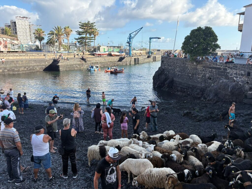 En el Muelle Pesquero se celebra el baño de cabras en el Puerto de la Cruz (Tenerife)