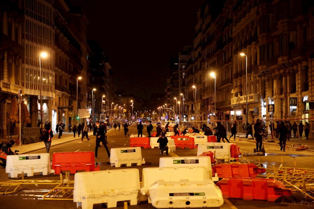 Han cruzado contenedores en la vía pública para formar barricadas, los han incendiado y han lanzado botellas, petardos y otros objetos a las líneas policiales.