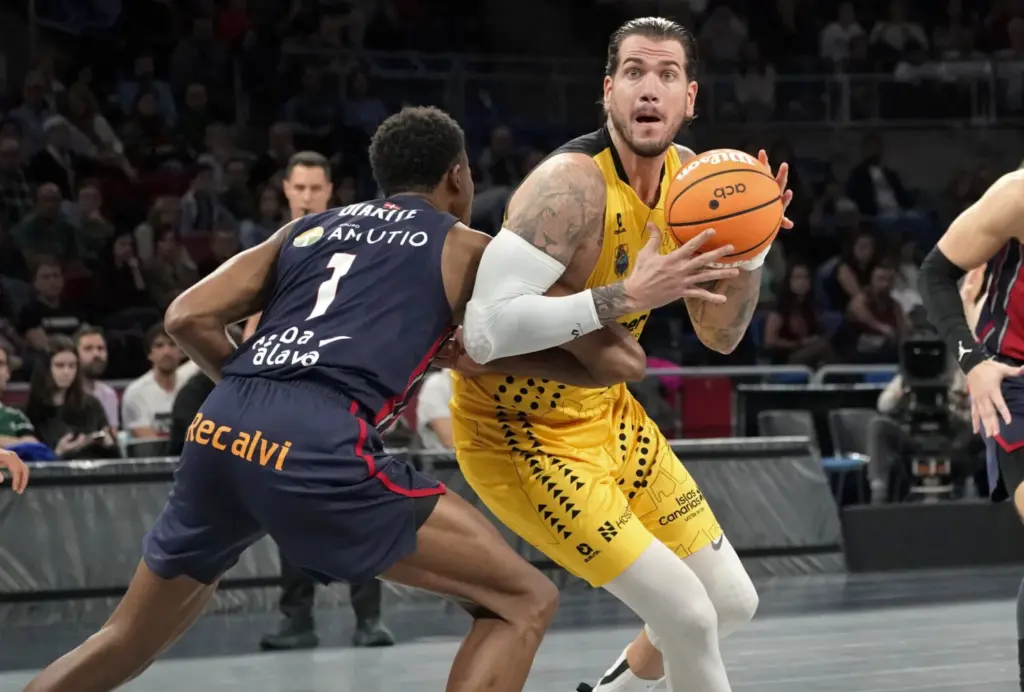 Había dos marchas totalmente opuestas sobre el parqué. Un desordenado Baskonia logró segundas opciones a partir del rebote ofensivo pero no pudo aprovecharlas y el conjunto tinerfeño se fue por delante al descanso con un cómodo 29-40 tras apretar el acelerador en el segundo asalto.