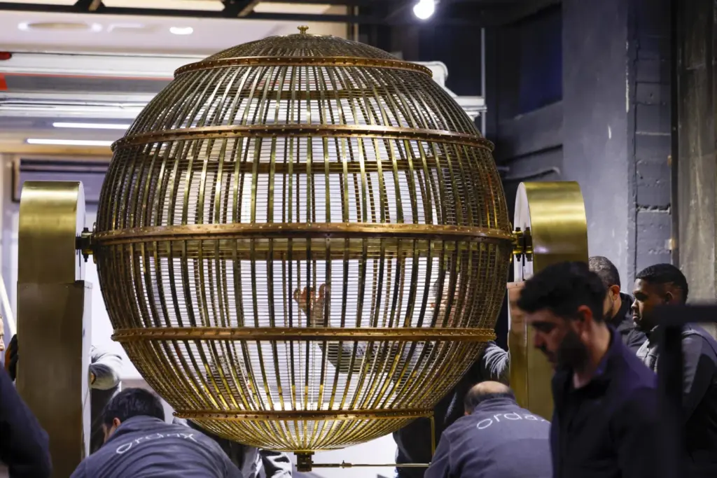 Como cada año, el bombo grande (con un diámetro de la esfera de 1,58 metros) se ha ubicado en el escenario para acoger las 100.000 bolas de los números que participan en el sorteo. Fabricado hace 19 años en una aleación de latón y bronce, tiene una altura de 2,64 metros, una anchura de 2,11 metros y un peso aproximado de 850 kilos.