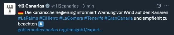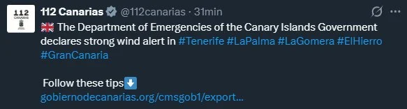 El 112 Canarias publica recomendaciones de seguridad por la borrasca Emilia en inglés y alemán, dirigidas especialmente a residentes y turistas. El servicio de emergencias recuerda las pautas básicas ante el fuerte oleaje y el mal tiempo previsto en las próximas horas.