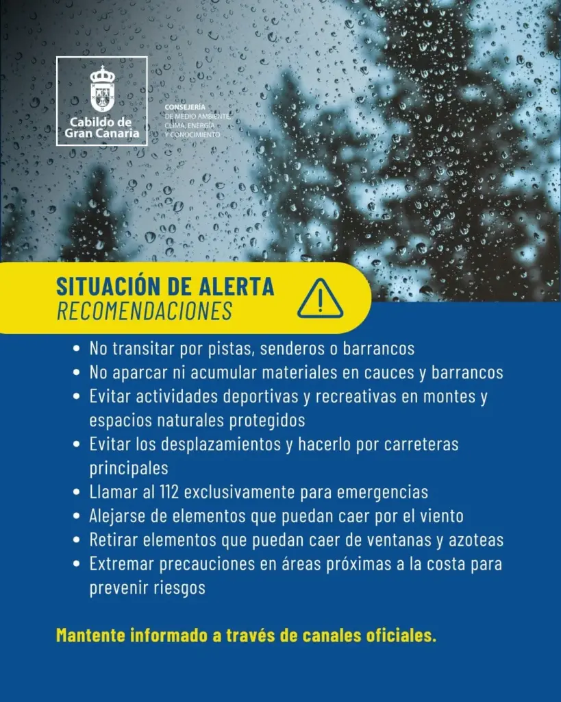 El alcalde de la ciudad, Juan Antonio Peña, pide “actuar con prudencia, serenidad y responsabilidad”, evitando desplazamientos innecesarios y extremando las precauciones en las áreas costeras, siguiendo las recomendaciones del Gobierno de Canarias.