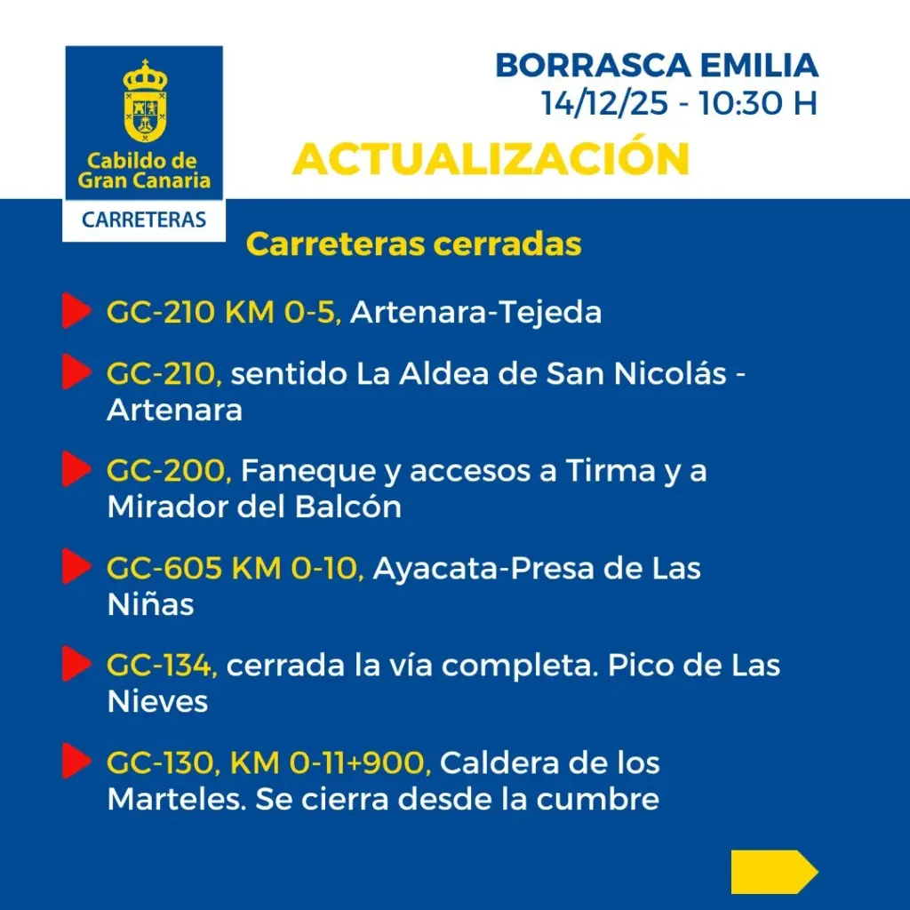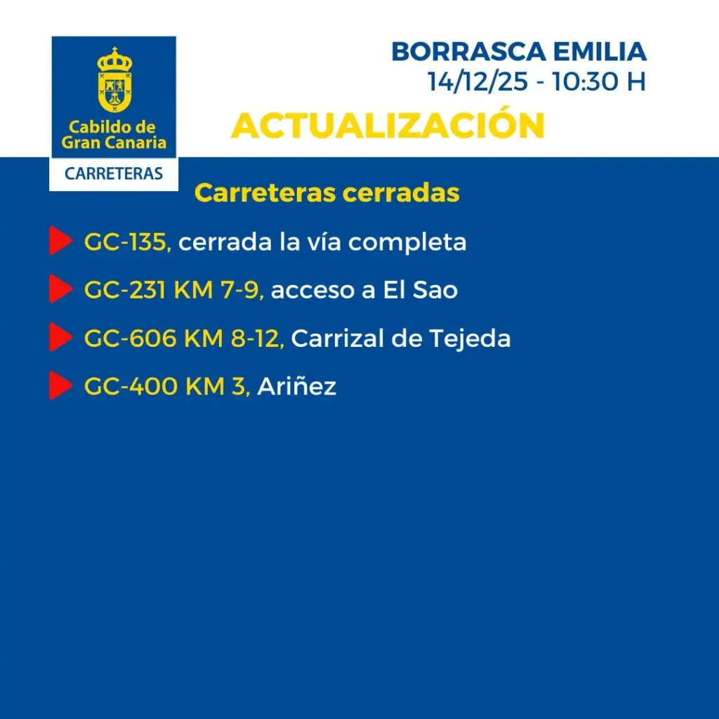 - Última hora de la borrasca Emilia e incidencias en Canarias (14 diciembre 2025)