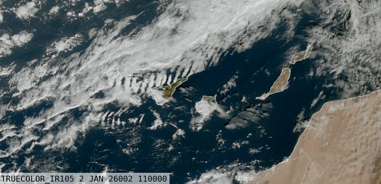 Canarias comienza el año con un frente asociado a la borrasca Francis. Tendremos un 1 de enero pasado por agua y con previsión de lluvias que pueden ser localmente fuertes, tormentas, vientos y mal estado de la mar.