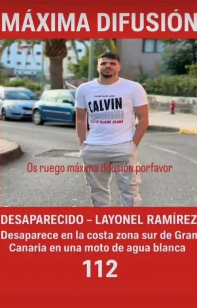 A Layonel Ramírez se le busca en Gran Canaria. El joven desapareció en la costa sur de Gran Canaria. Viajaba en una moto de agua blanca y los familiares han lanzado este mensaje de máxima difusión para dar con su paradero.