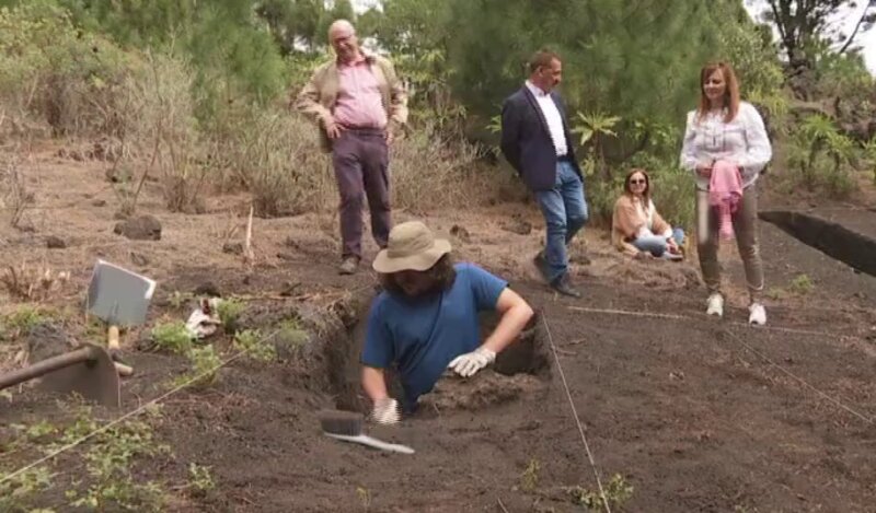 Los trabajos de excavación en búsqueda de fosas con restos de represaliados de la Guerra Civil se han reanudado con la ayuda de un georradar en el entorno del Pino del Consuelo, en Fuencaliente (La Palma), ya que se estima que pueden haber hasta 37 personas enterradas en la zona de pinar del municipio.