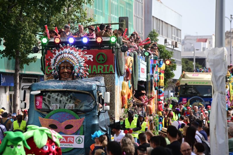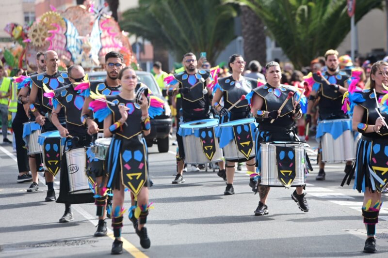 15 carrozas en total con su música y la jovialidad de sus ocupantes animaron la Cabalgata. Miles de personas que intercatuaron con ellas a su paso, y algunos no dudaron a unirse en un recorrido. También se sumaron los tambores de las batucadas Samba Isleña y Paixao, las comparsas Lianceiros Junior y Brisa de Volcán y las murgas infantiles Los Trapasitos, Los Chachitos y Los Biznietos de Sarymanchez.