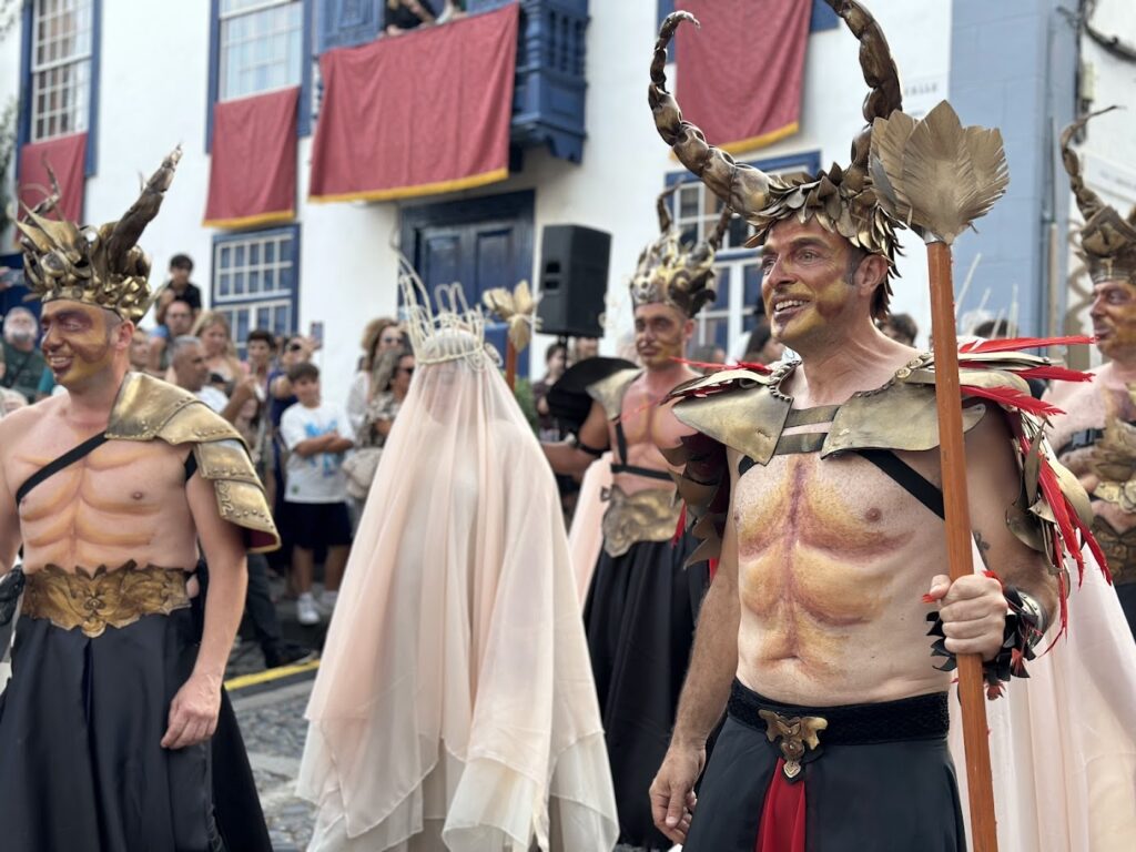 En esta edición, el cortejo adoptó una estética barroca, con elementos tradicionales que reviven danzas y figuras ya emblemáticas en la historia festiva insular.