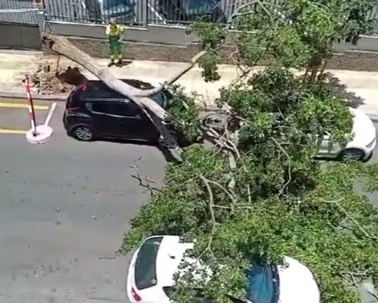 Bomberos del consorcio de Tenerife se han desplazado a la zona para retirar el ejemplar que ha causado daños, al menos, en un vehículo. Ha sido necesario cortar la vía al tráfico mientras se retiraba el ejemplar. No hay que lamentar daños personales a pesar de la cercanía de una terraza.