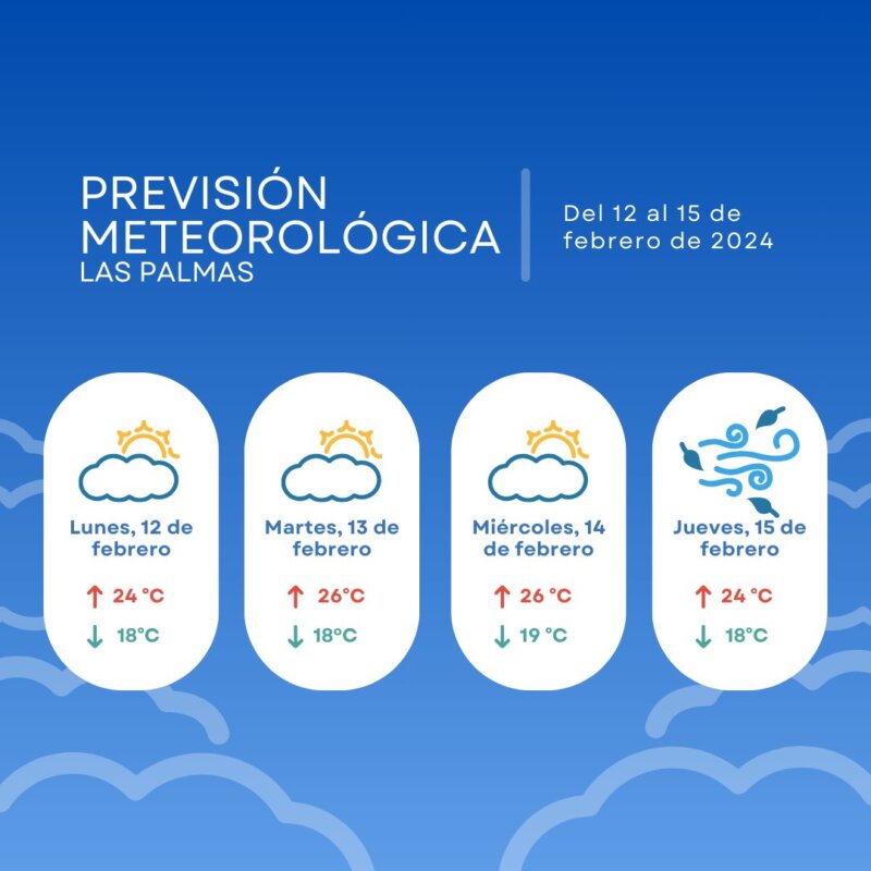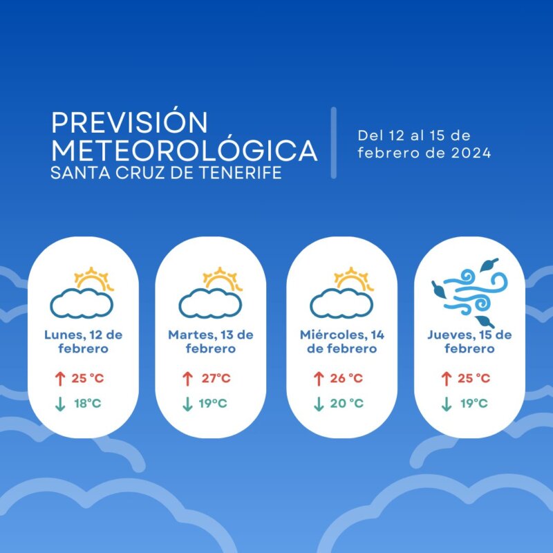 Temperaturas máximas y mínimas del 12 al 15 de febrero