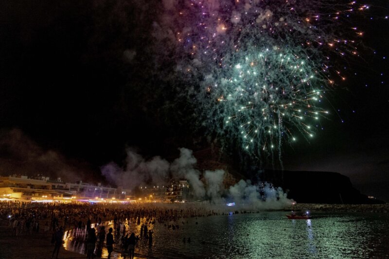 La playa de Mogán fue un año más el escenario escogido por cientos de personas de la isla para celebrar una de las noches más mágicas del año, la de San Juan. En la velada, organizada por el Ayuntamiento de Mogán, no faltaron la gran hoguera, los fuegos artificiales y un espectáculo de las Escuelas Artísticas del municipio, pero tampoco los ritos de la buena suerte y la música para bailar y disfrutar hasta bien entrada la noche.