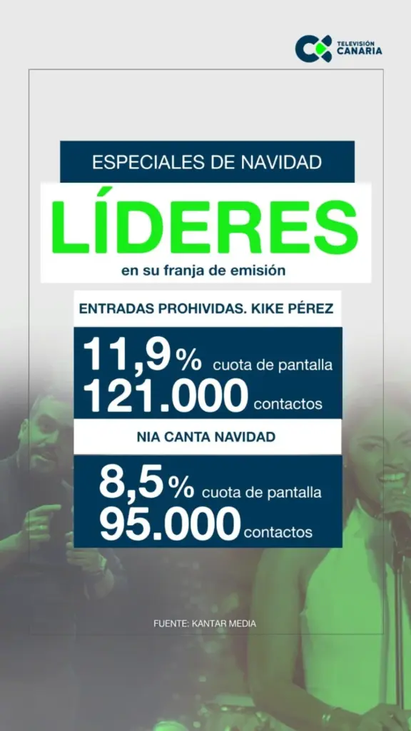 En redes sociales, la comunidad de Televisión Canaria continúa creciendo, superando ya los 400.000 seguidores en Facebook. En los dos últimos días, los contenidos vinculados a la programación navideña han alcanzado cerca de 2 millones de impresiones en el conjunto de las redes sociales.