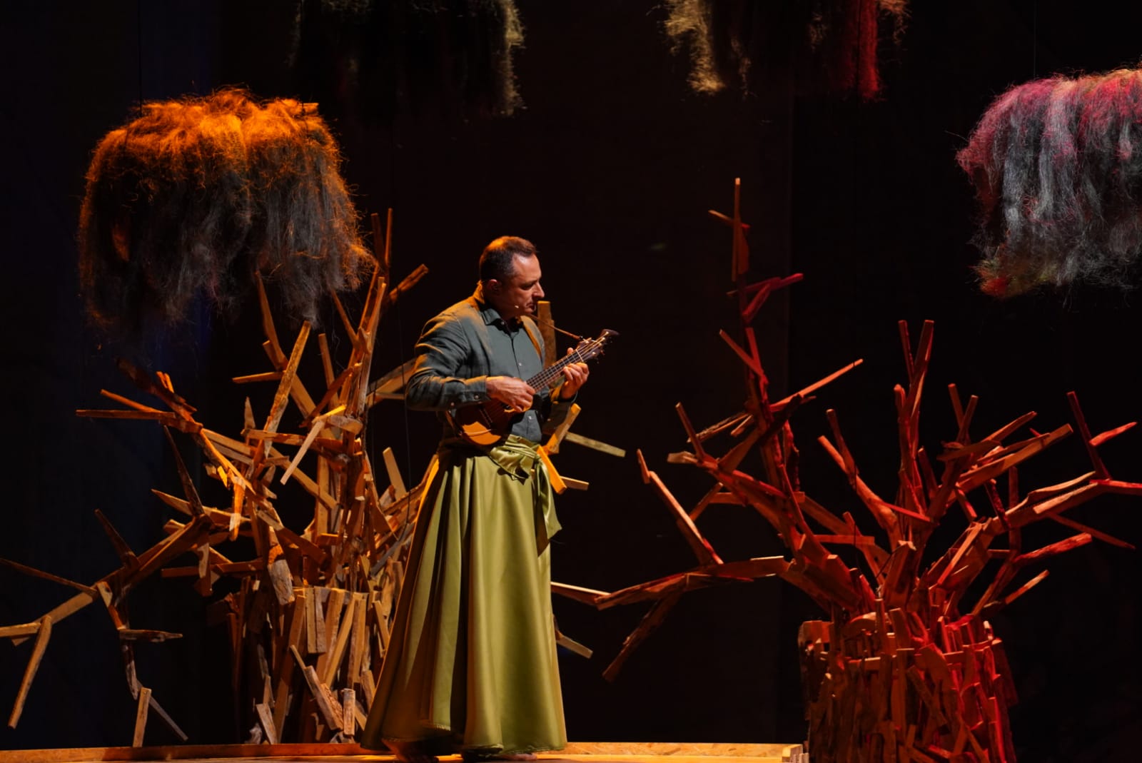 Una gala del Acto Institucional por el Día de Canarias que ha comenzado con un espectáculo en su apertura. Una representación titulada ‘Sangre de tea‘ que ha sido creada y dirigida por Mario Vega. Esta obra ha puesto en valor las señas de identidad de las canarias y los canarios. Simboliza la fortaleza y la resistencia del pino canario.