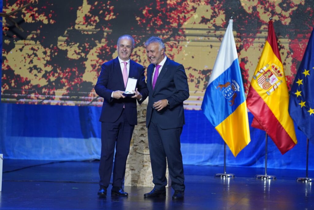 También trasladó su reconocimiento a las diez personas y entidades que recibieron las Medallas de Oro de Canarias, que este año recayeron en: Radio Televisión Canaria, Club Deportivo Tenerife, Universidad Nacional de Educación a Distancia (UNED), Rosa María Aguilar Chinea, Cooperativa Agrícola del Norte de Gran Canaria, Miguel Velázquez Torres, Club Maxorata de Lucha Canaria y Radio Lanzarote.