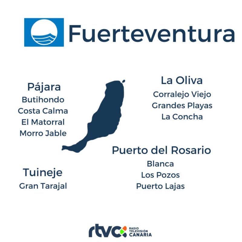 La Oliva: Corralejo Viejo, Grandes Playas, La Concha. Pájara: Butihondo, Costa Calma, El Matorral, Morro Jable. Puerto del Rosario: Blanca, Los Pozos, Puerto Lajas. Tuineje: Gran Tarajal.