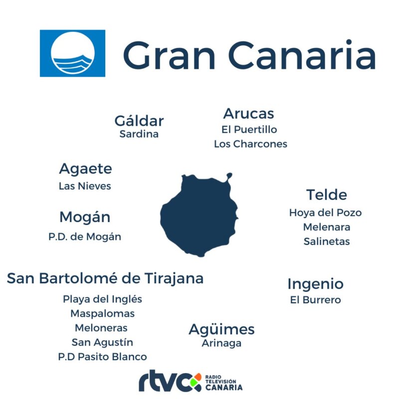 Agaete: Las Nieves. Agüimes: Arinaga. Arucas: El Puertillo, Los Charcones. Gáldar: Sardina. Ingenio: El Burrero. San Bartolomé de Tirajana: El Inglés, Maspalomas, Meloneras, San Agustín. Telde: Hoya del Pozo, Melenara, Salinetas.