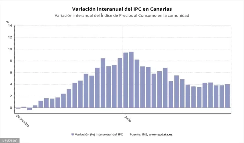 El Índice de Precios de Consumo (IPC) subió un 4 por ciento en Canarias en enero en tasa interanual, lo que supone la más alta del país, según el Instituto Nacional de Estadística (INE)