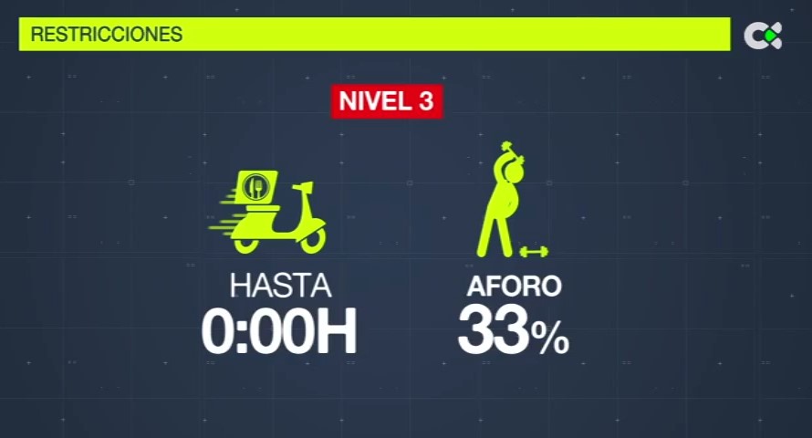 Por otra parte, se levanta el cierre de los gimnasios en el nivel 3. Desde que se publique en el BOC, podrán abrir también en este nivel de alerta siempre y cuando garanticen un aforo máximo del 33%, garanticen la distancia de seguridad y no haya más de cuatro personas por grupo, más el monitor.