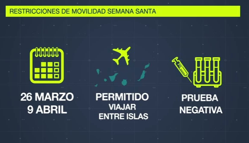Los ciudadanos de las Islas que se encuentren en Nivel 3 no podrán viajar entre los días 22 y 25 de marzo. Del 26 de marzo y hasta el 9 de abril se levanta esta restricción para todo el Archipiélago, siempre y cuando que, quienes quieran viajar, muestren PCR negativa.