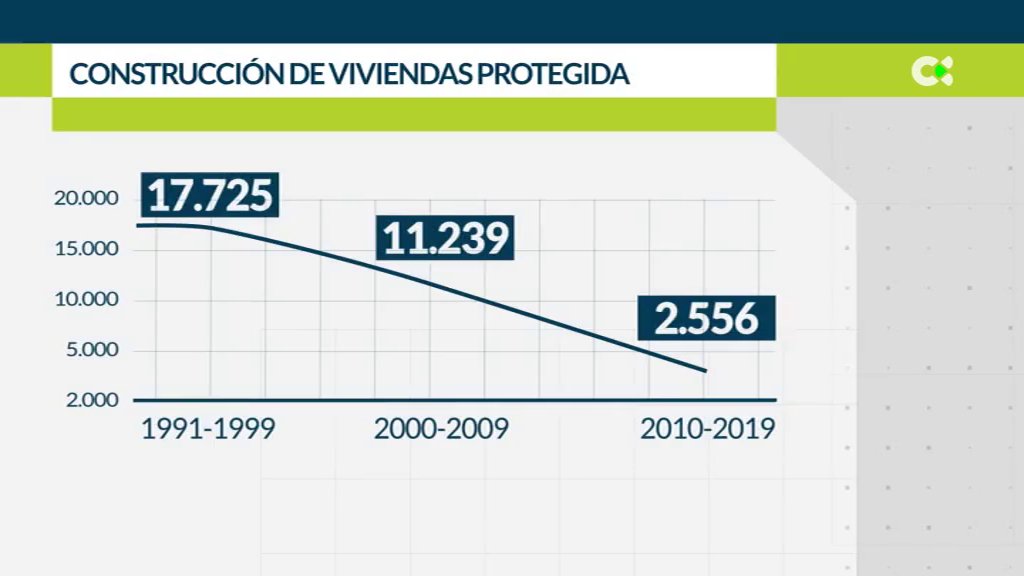 Según datos del Ministerio de Vivienda, desde 1991 la creación de vivienda protegida ha ido disminuyendo. En la década de los 90 fueron más de 17.700, más de 11.000 en los 2000 y poco más de 2.500 en la década de 2010.